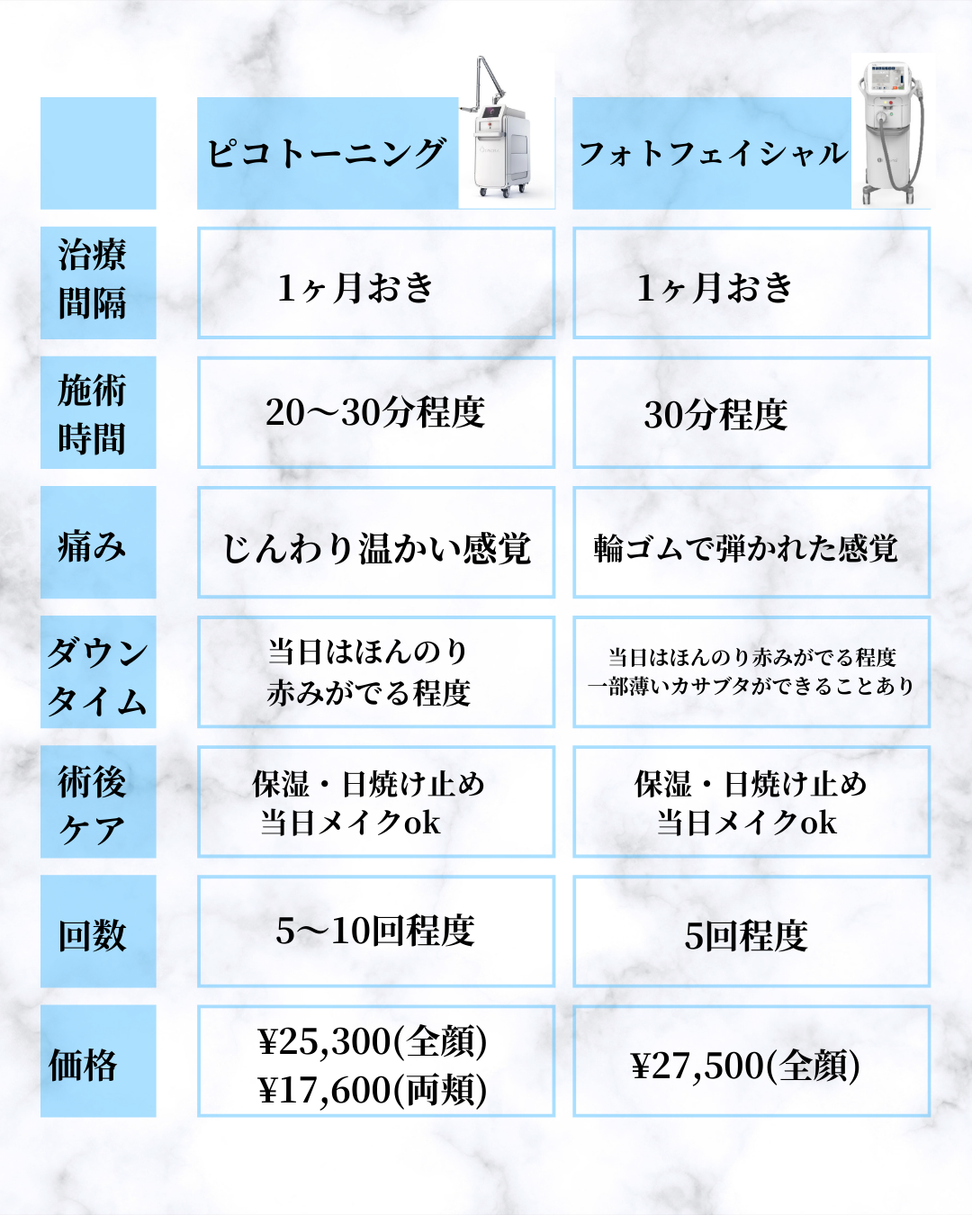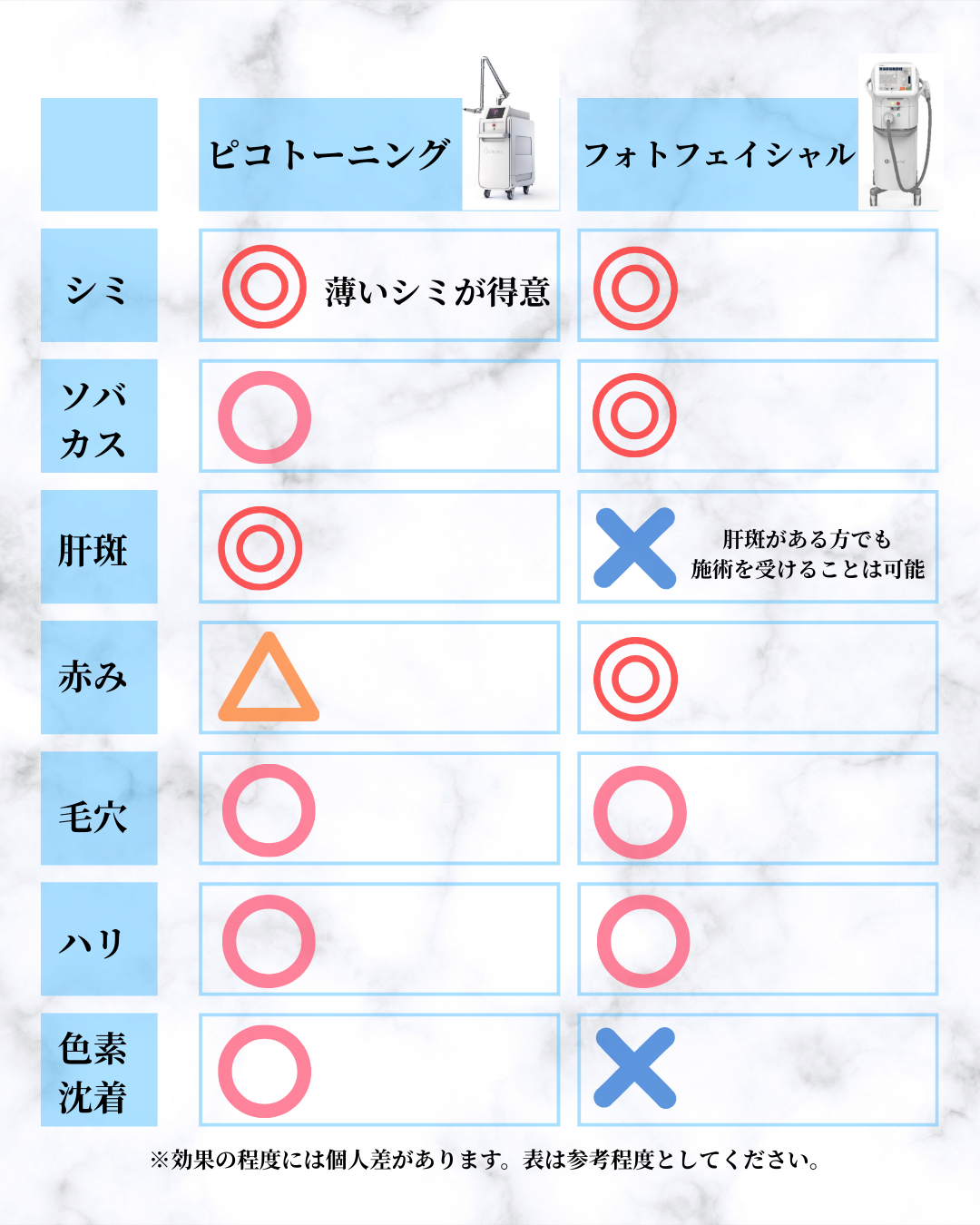 ピコトーニング×フォトフェイシャル(IPL)について比較!|水上形成外科 美容クリニック|浜松市の形成外科、美容外科、美容皮膚科、皮膚科