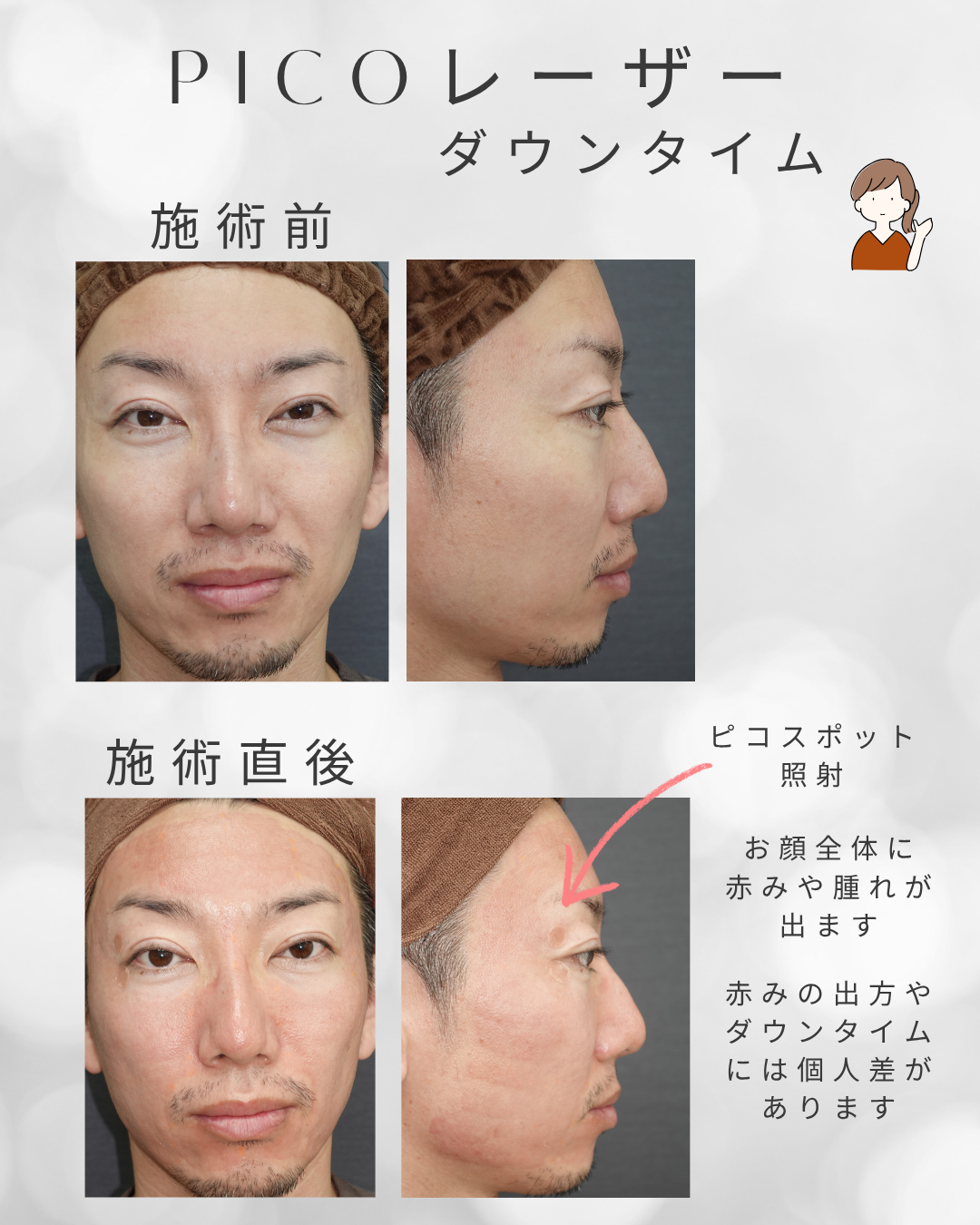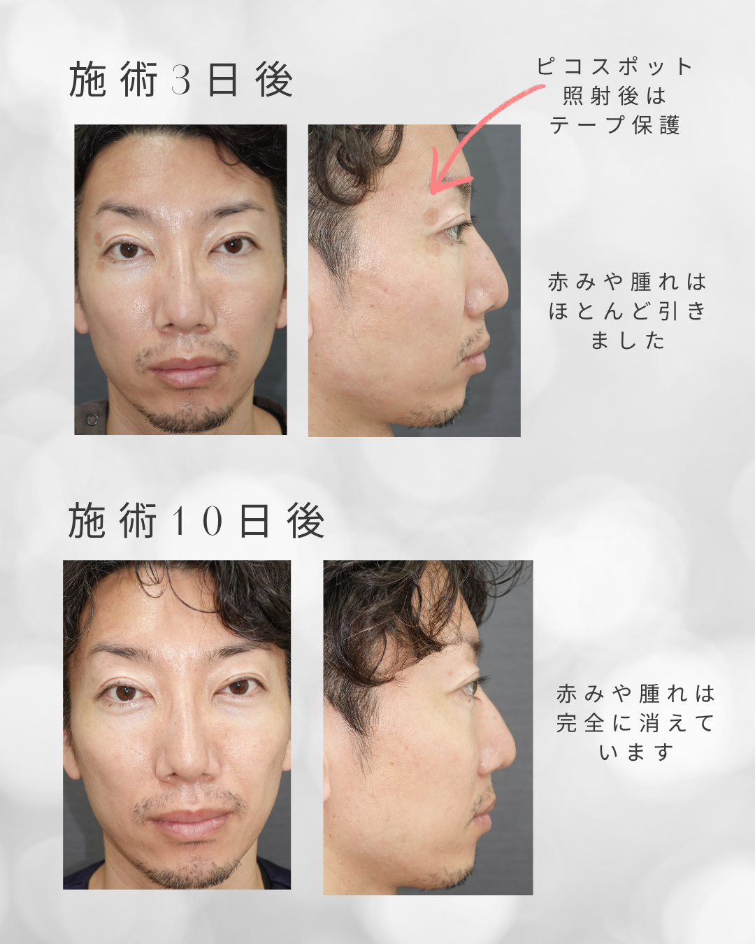 以下の写真は、ピコトリプルのダウンタイム経過です🌟ピコスポットを行った場合、その周囲にさらに赤みや腫れが出ます。