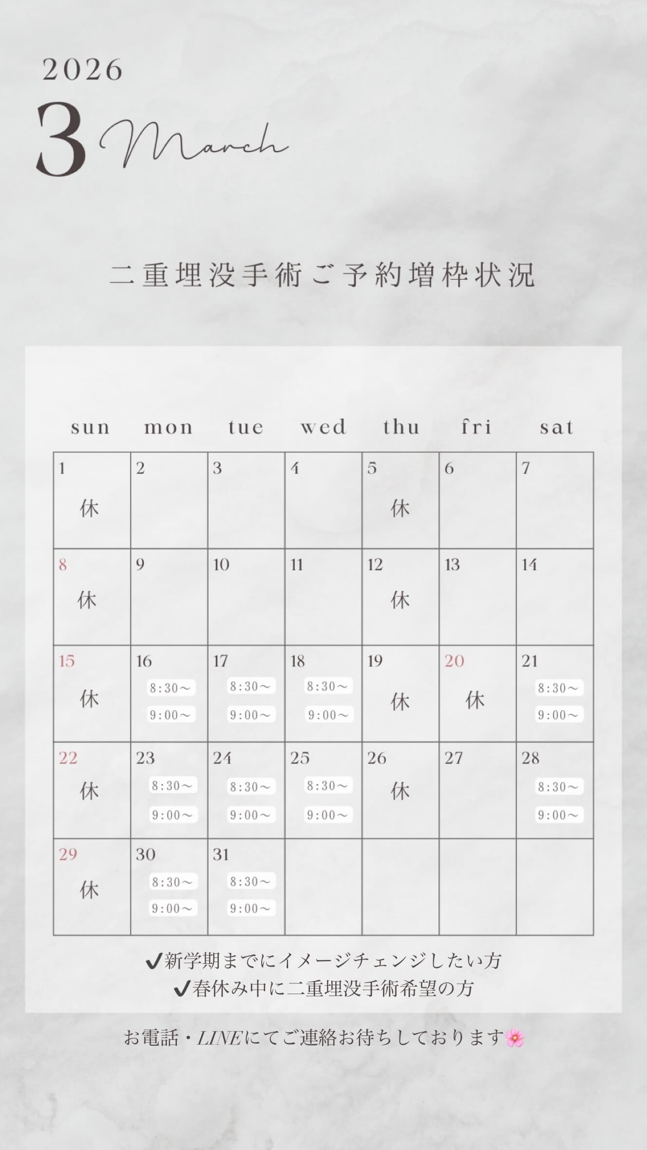 ありがたいことに、現在3月のご予約がほぼ満枠となっております。